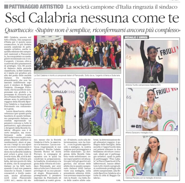 Le pattinatrici reggine della Società Sportiva Calabria, commosse, ringraziano “Falcomatà
